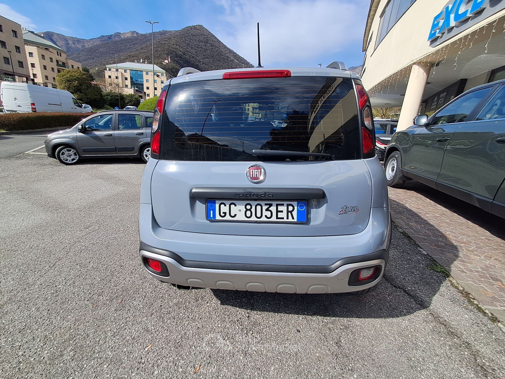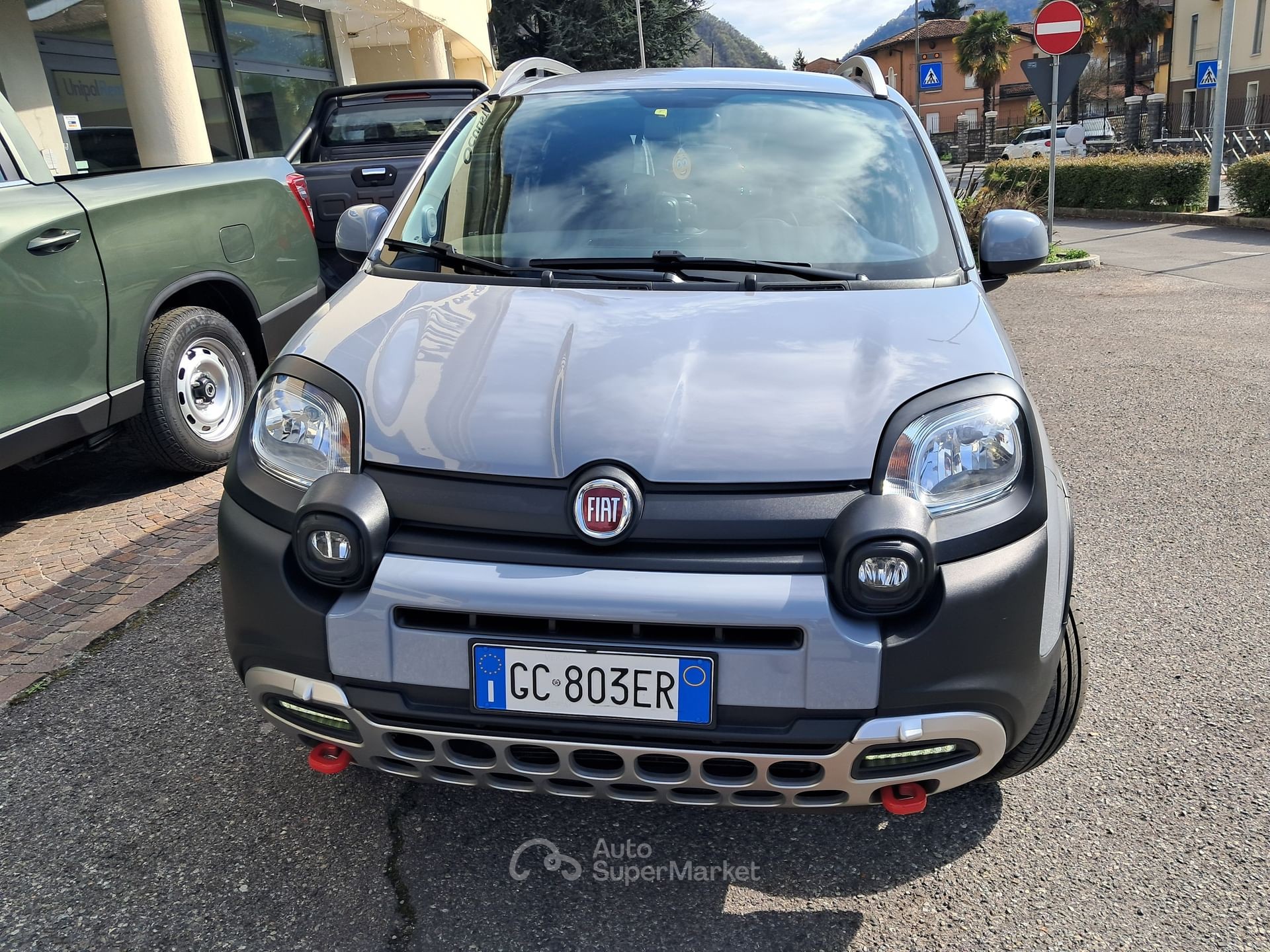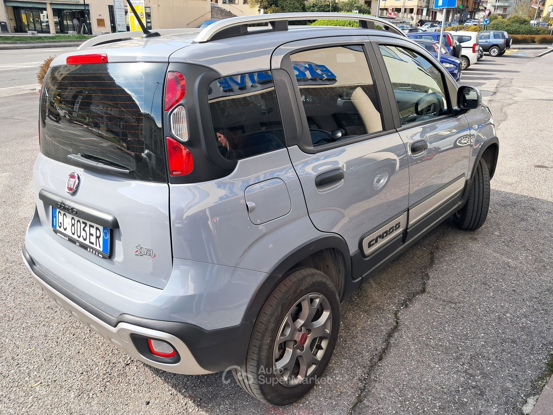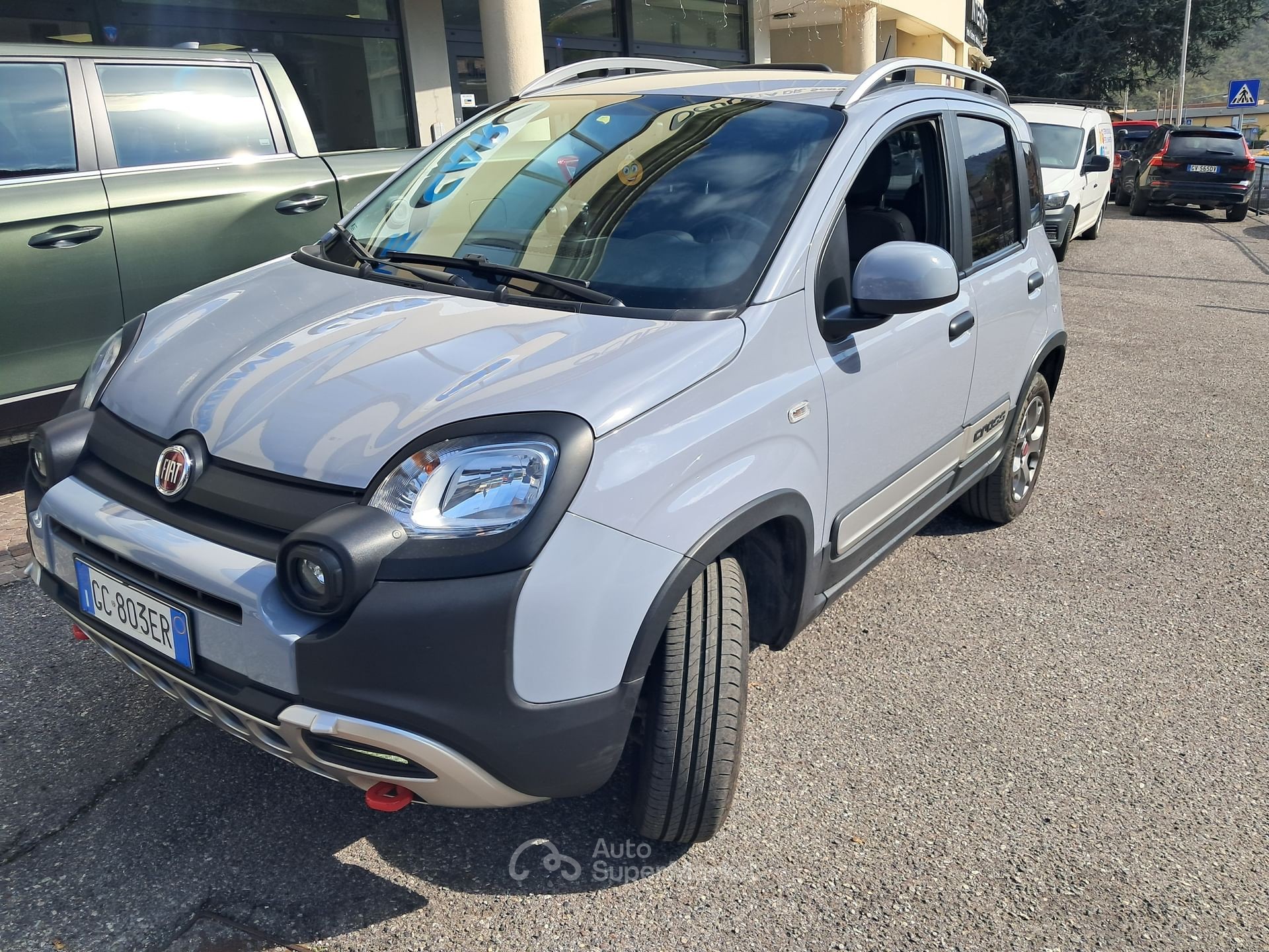 L’annuncio riguarda una Fiat Panda 0.9 Cross 4×4 benzina, una vettura usata di categoria berlina con carrozzeria grigio metallizzata “Grigio Colosseo”. L’auto ha una configurazione interna con sedili parzialmente in pelle grigia e posti per 5 persone, con 5 porte.
