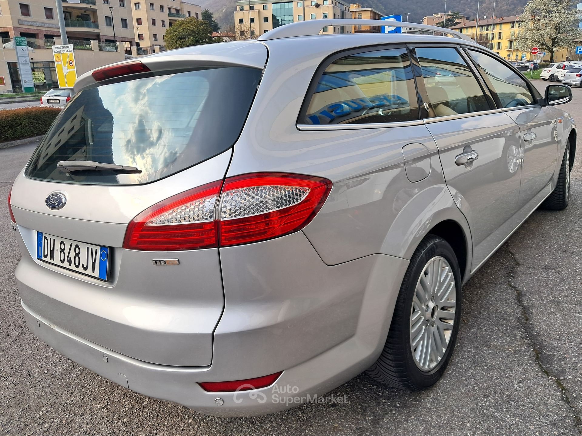 Annuncio per Ford Mondeo 2.0 TDCi 140 CV station wagon, con carrozzeria metallizzata di colore grigio e interni in pelle nera. L’auto è dotata di 5 porte e 5 posti a sedere ed è alimentata a diesel con motore 4 cilindri da 1997 cc, potenza di 141 CV (103 kW), cambio automatico a 6 marce e trazione anteriore. Consumo combinato di circa 9,8 litri ogni 100 km.
